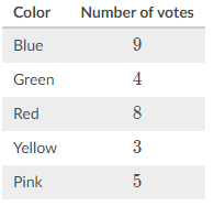 The following table shows the results of a vote for Lola’s dance team’s color.