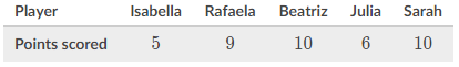 What was the minimum number of points scored by a player?