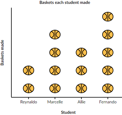 What was the fewest baskets a student made?