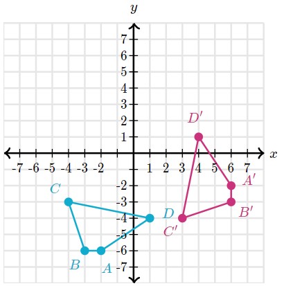 Quadrilateral A’B’C’D is the image of quadrilateral ABCD under a rotation about the origin, (0, 0).