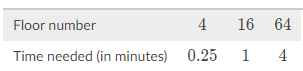 The following table shows the time it takes to ride the elevator to three different floors of a skyscraper.