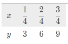 Does the following table show a proportional relationship between the variables x and y ?
