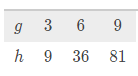Does the following table show a proportional relationship between the variables g and h ?