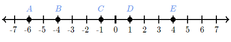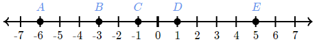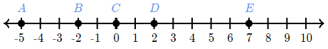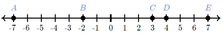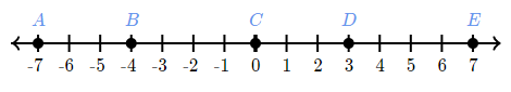 Which point represents the opposite of 7 on the number line?