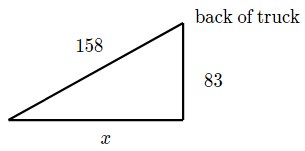 Jake plans to use a ramp to make it easier to move a piano out of the back of his truck. The back of the truck is 83 centimeters tall and the ramp is 158 centimeters long.