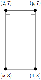 You are graphing Rectangle ABCD in the coordinate plane. The following are three of the vertices of the rectangle: A(2, 1), B(5, 1), and C(5, 6).