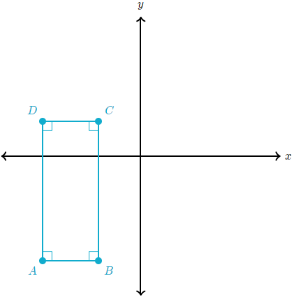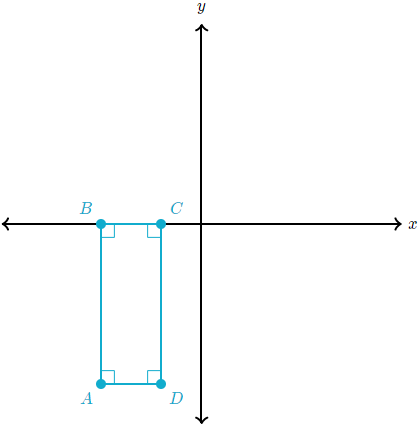 Rectangle ABCD is graphed in the coordinate plane. The following are the vertices of the rectangle: A(-7, -5), B(-7, 6), C(-4, 6), D(-4, -5).