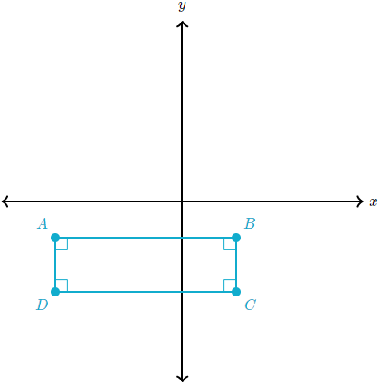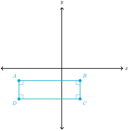 Rectangle ABCD is graphed in the coordinate plane. The following are the vertices of the rectangle: A(−8, −6), B(−3, −6), C(−3, −4), and D(−8, −4).