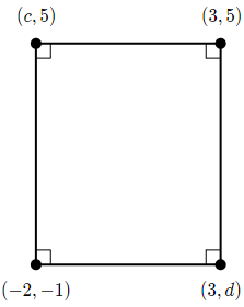 You are graphing Rectangle ABCD in the coordinate plane. The following are three of the vertices of the rectangle A(3, 5), B(3, −4), and C(−2, −4).