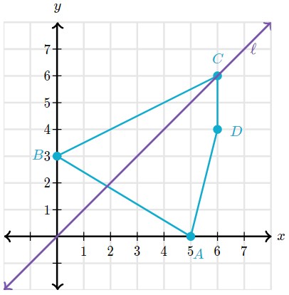 Quadrilateral A’B’C’D’ is the result of reflecting quadrilateral ABCD across the line ℓ.