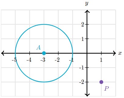 Circle A‘ is the result of rotating circle A by 180∘ about point P.