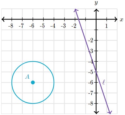 Circle A’ is the result of reflecting circle A across the line ℓ.