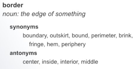 Based on the thesaurus entry, which words mean the opposite of border as it is used in the sentence below?The border between the cities ran alongside Main Street.