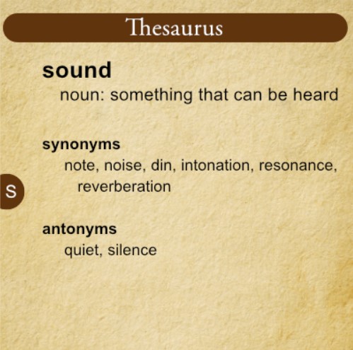 Click on the section of the thesaurus entry that shows words that have the opposite meaning of sound.