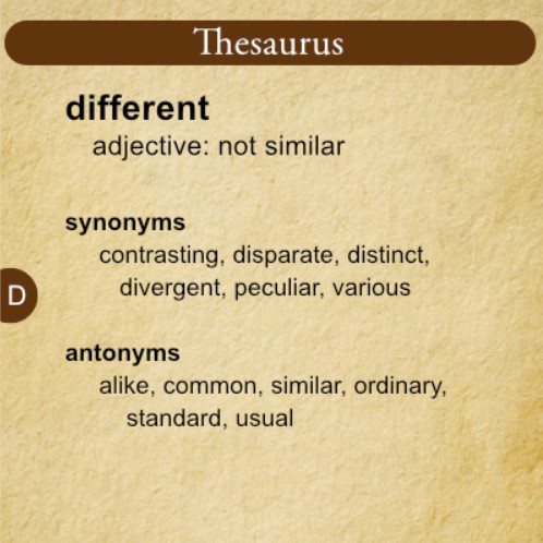 Click on the section of the thesaurus entry that shows words that have the same meaning as different.